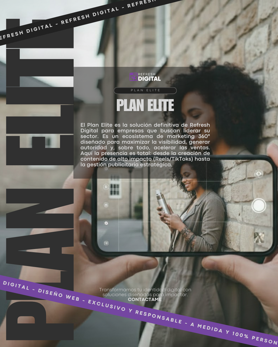 Este es el motor de crecimiento definitivo para empresas que buscan resultados acelerados y una presencia total en el mercado. Con el Plan Elite, Refresh Digital se convierte en tu propio departamento de marketing externo. Combinamos la omnipresencia diaria con una estrategia agresiva que une la creación de contenido profesional (foto y video) con la potencia de la publicidad pagada (Ads). Es un plan diseñado para dominar el feed, captar prospectos activamente y convertir tu perfil de Instagram en una máquina de ventas que trabaja 24/7.